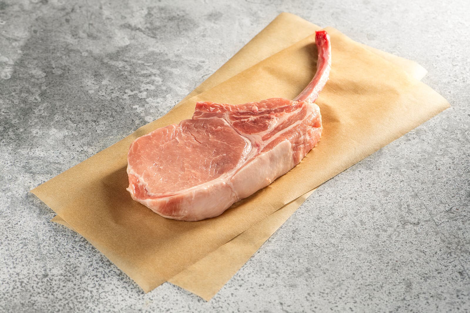 This specialty cut of meat is also called a bone-in ribeye. The chop is French-trimmed to leave a polished rib-bone “handle” outside the meat. Like all ribeyes, this is an exceptionally tender and flavorful cut of meat that does well with grilling, pan-searing, and roasting.